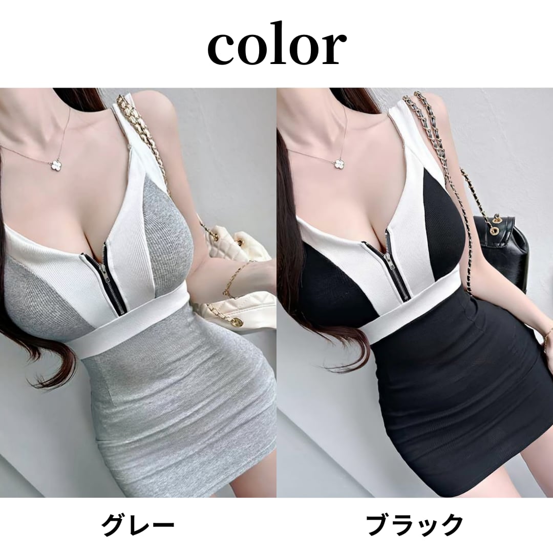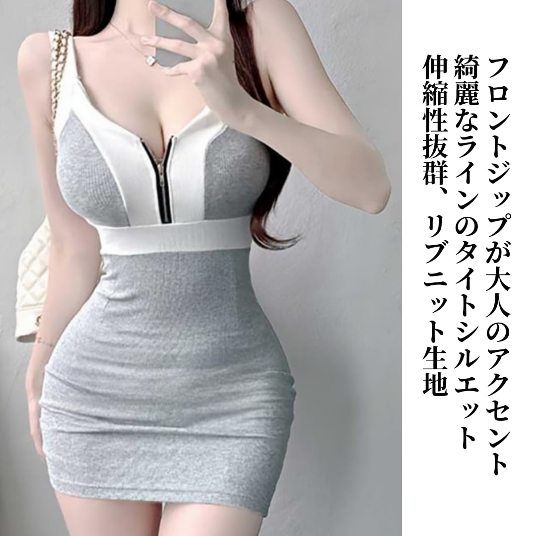 ノースリーブ ジッパーニットワンピース|レディース ボディコン セクシー ミニ丈|3カラー フリーサイズ|即日発送可能 m233