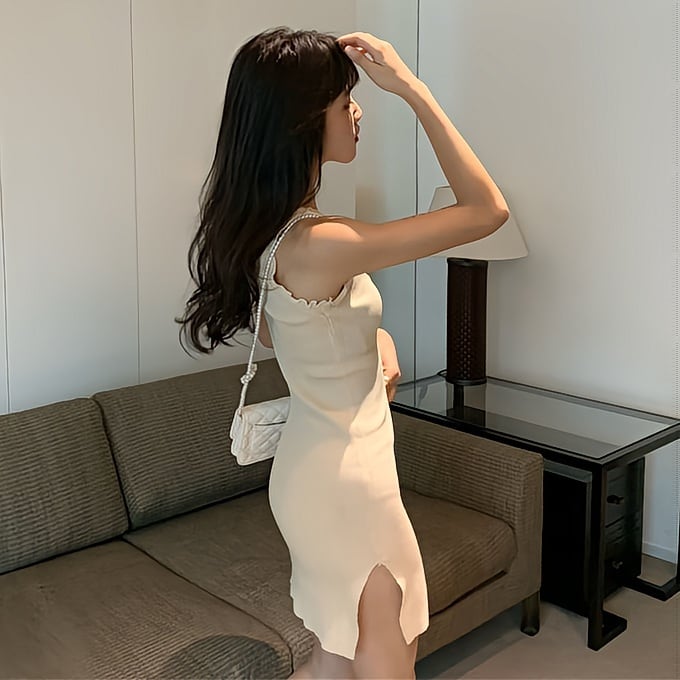 体のラインを強調する定番のデザインながら裾は切りっぱなしになっておりシームレス、両サイドのスリットは美脚効果と機能性も抜群。
