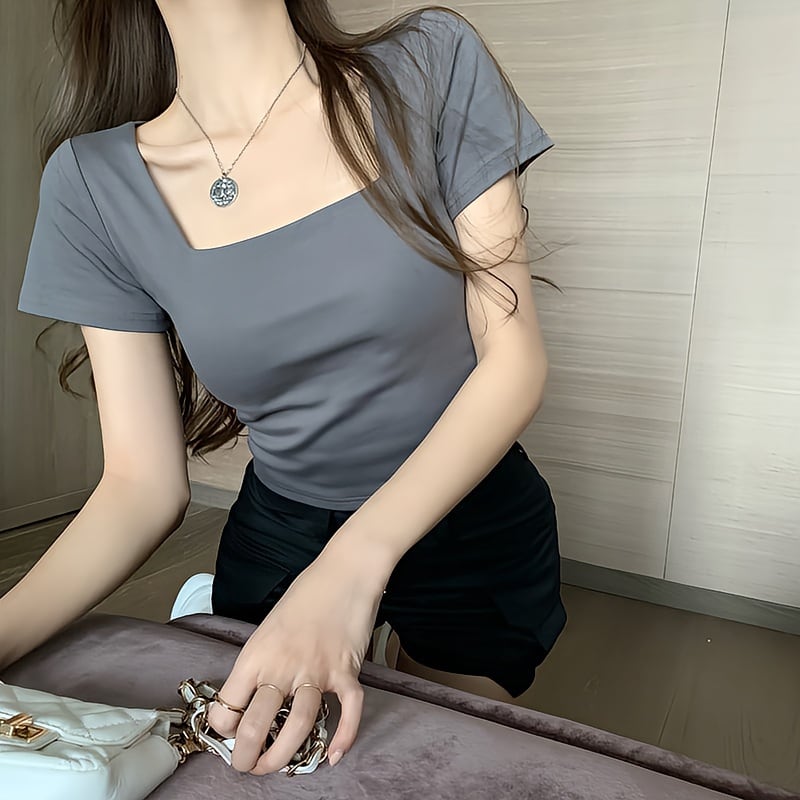 直線的な四角いカットは首筋からデコルテにかけて綺麗に見せてくれ、上品で大人っぽい仕上がりになります。
