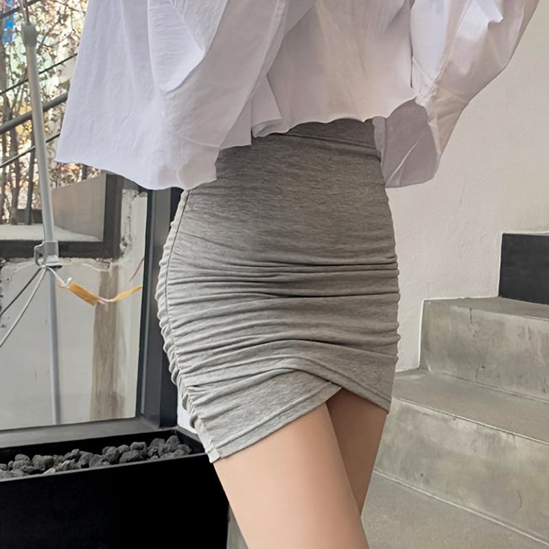 ラップデザインが女性らしい印象を与えるタイトミニスカートです。