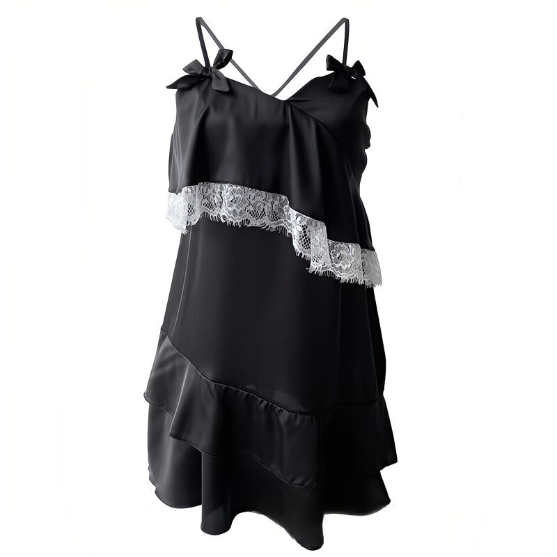 m96 ランジェリー風サテンとレースのミニキャミワンピ2