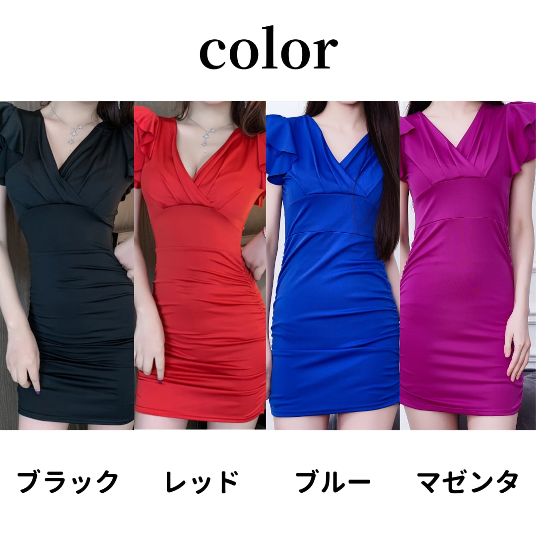 大人気のフリル付きタイトVネックミニワンピが登場。