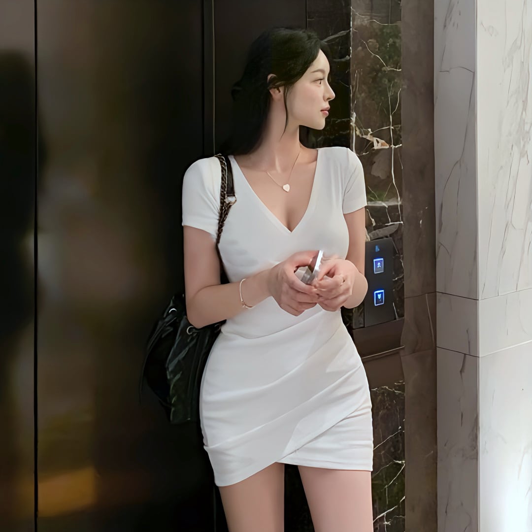 V字型のカットとラップデザインが華やかな女性らしさを演出。